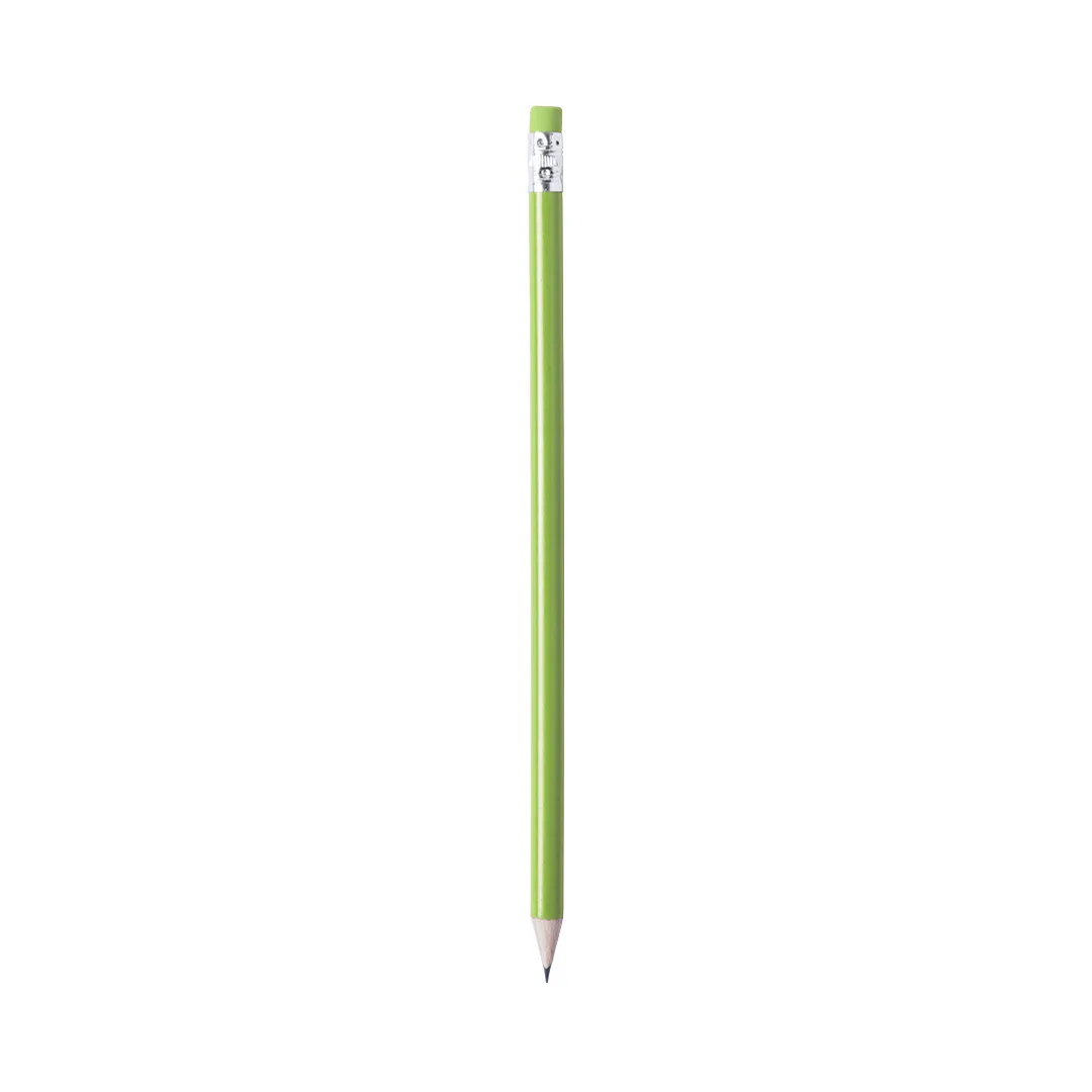 Wooden pencil with round body in a wide range of bright tones and matching color eraser. Sharpened tip.